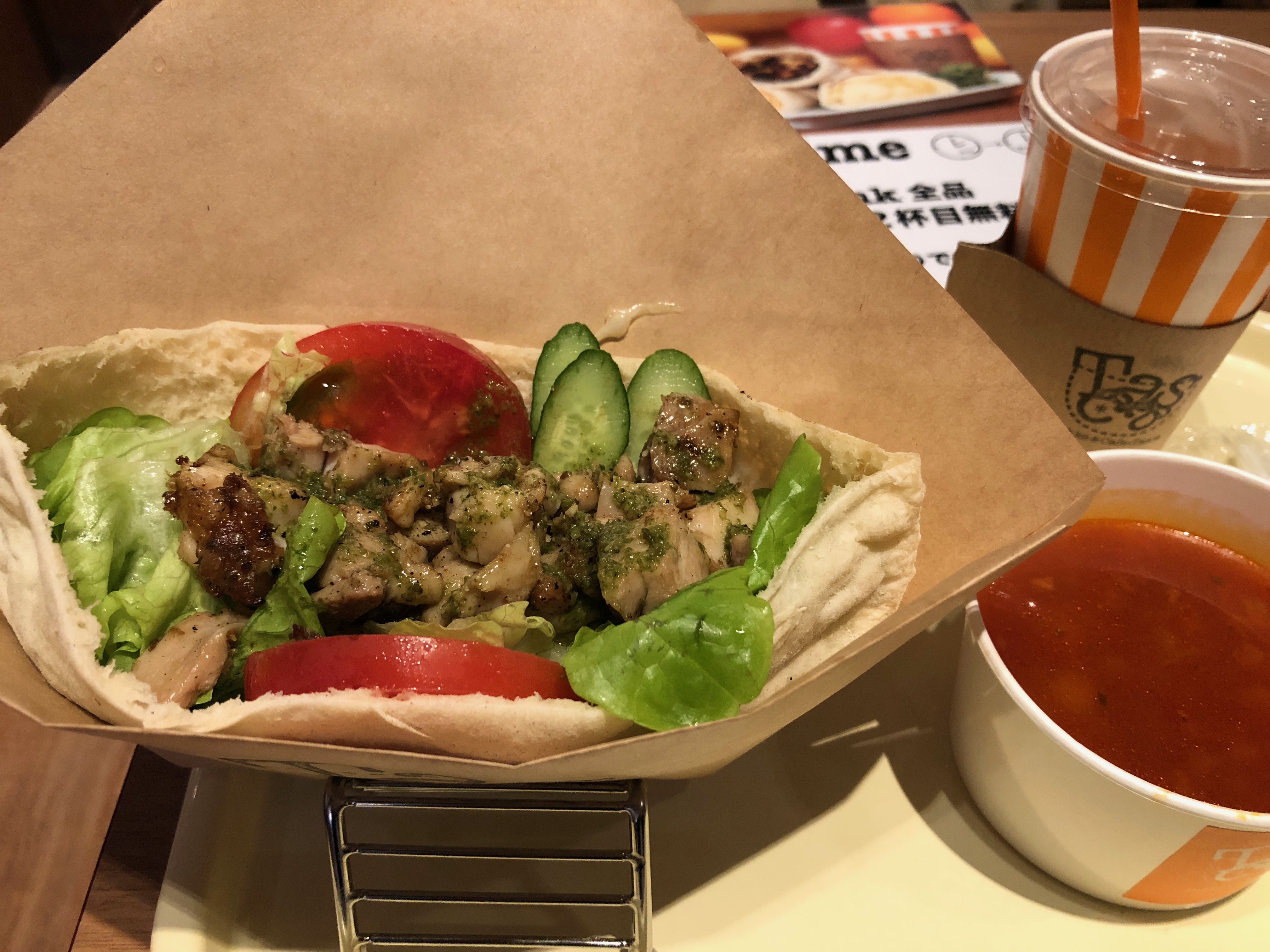 店頭にワックスサンプルを置いているのは、理解できる。この店で売っている「ピザ以外」の商品は、なかなか馴染みがないものだからだ。昔々に中東発祥のピタというリーンな生地のサンドイッチが瞬間的に登場したことがあるが、コレもそれに似たようなものだ。まあ、ナポリ生地も徹底的にリーンな生地なので、限りなくピタサンドに似ている。このサンドの売りは、たっぷり野菜が食べられるという点にある。だから、メンチカツとかコロッケなどはフィリンフにしてはいけない。オリーブとか、ケールとか、それっぽい西洋野菜をハーブたっぷりドレッシングで食べさせるというのが定石だろう。チキンとかシーブードがメインとなる。ただし、コレはテイクアウトした時に経時劣化がきつい。野菜から水分が出てくるからだ。テイクアウトが弱いというのはファーストフードとしては欠陥商品なのだ。多店舗化は難しい。