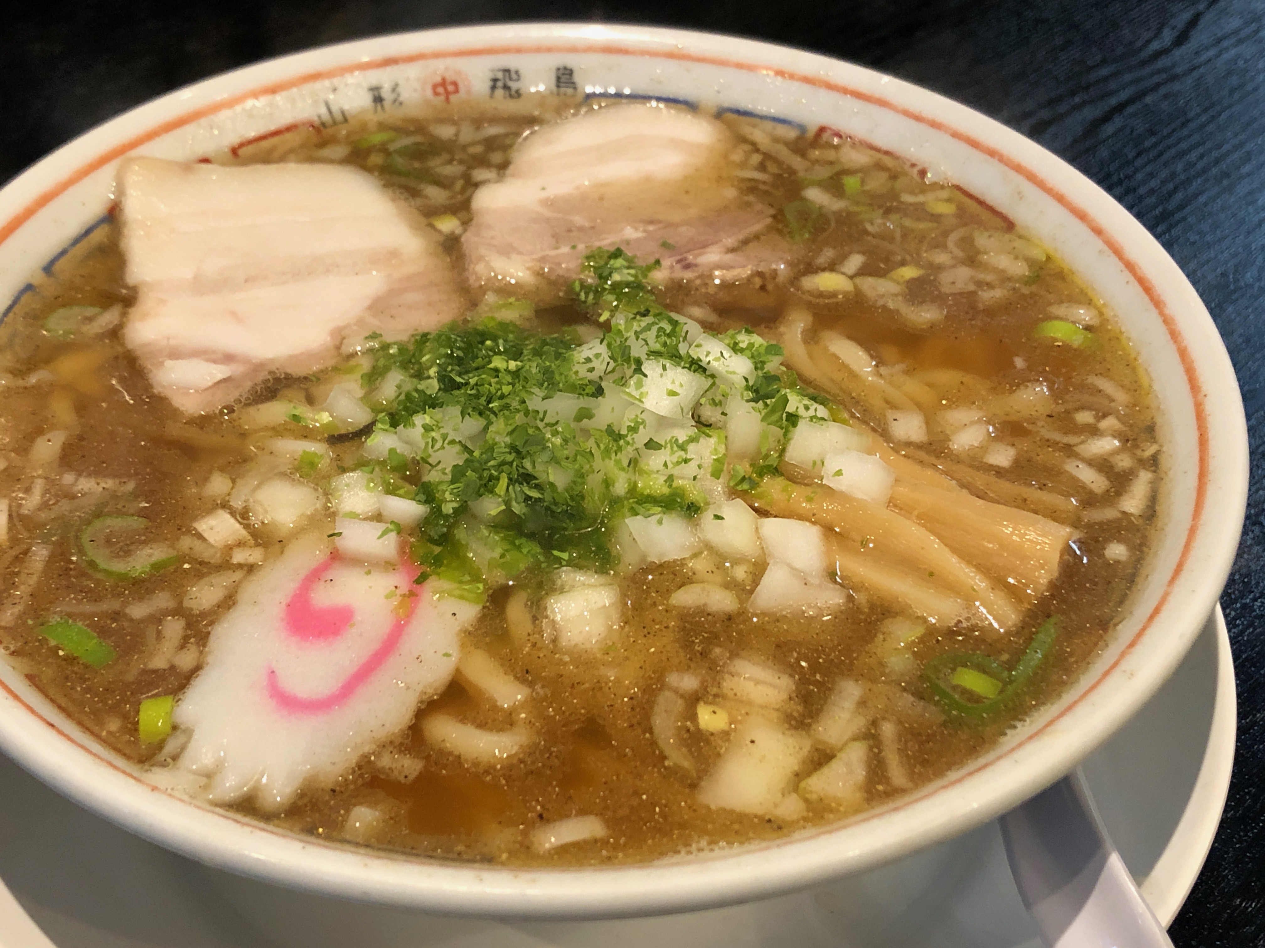 山形県酒田の北にある鳥海山のあたりで、あごだしラーメンを食べたことがある。おそらく酒田沖の飛島あたりでトビウオがたくさん取れていたのだろう。魚介出汁では煮干しを使うところが多いが、あごだし(トビウオだし)は、それより一段上の味がすると思う。強いというのは、魚臭さではなく出汁の味が良くなる、濃厚になるという意味だ。だからなのか、海苔は乗っていない。玉ねぎのみじん切りがうまい。うずまきのなるとは・・・なんだか郷愁をそそるトッピングだ。