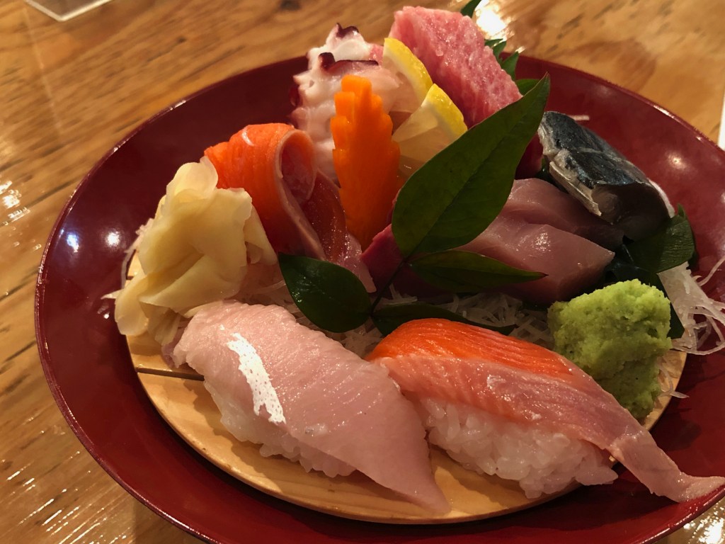 これは同じく仙台駅東口にある魚居酒屋のお通し。刺し盛りと握りが一緒に乗っているという異色の組み合わせ。これにお好きなお酒が2杯付いて1200円。ただし、ホテルでもらえるクーポン使用が条件なので、一般客はどうなるのだろう。仙台に魚居酒屋多いので、こういったゴージャスなサービスになるのかもしれない。https://hamaichiba.owst.jp