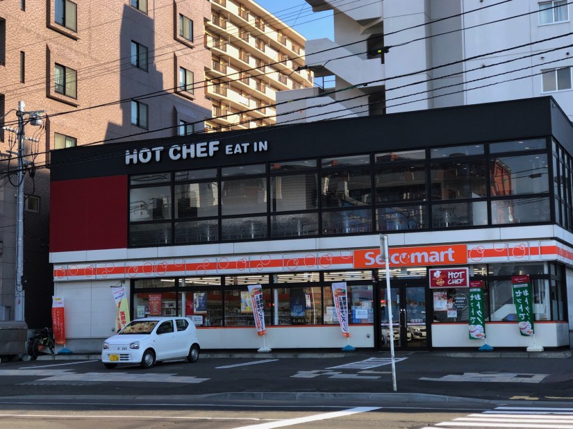 北海道でセブンイレブンを撃退する実力をもつセイコーマートの本社近くにある、実験店。セイコーマーチは店内調理可能なキッチンを併設している店がほとんどで、Hot Chefがそのロゴマークだ。持ち帰り弁当チェーンほど店内調理メニューが多いわけではないが、それでもレンジアップしないで暖かいお弁当が食べられるというのは、まさしく進化系コンビニといえる。最近はイートイン併設が増えている。