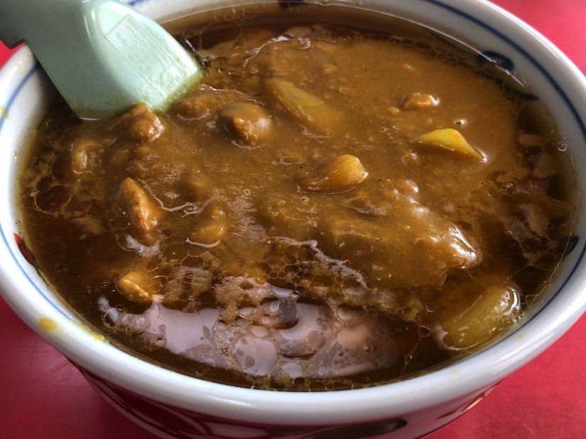 仙台の町中華では有名なのだろう。仙台駅から繁華街一番町に行く途中にあるお店。店頭のショーケースで見つけたカレーラーメンに惹かれ注文してみたが、これも予想の斜め上の上をいくびっくりメニューだった。このお店はカレーライスも売り物らしいのだが(次回挑戦しよう)、醤油ラーメンの上にまんまでカレールーがかけてある。なんとも食べ方が難しい。カレー南蛮(そば)のように麺として食べたものか、カレーライスのように麺と一緒にルーを食べたものか迷う。これは一度頼めば良いかな。