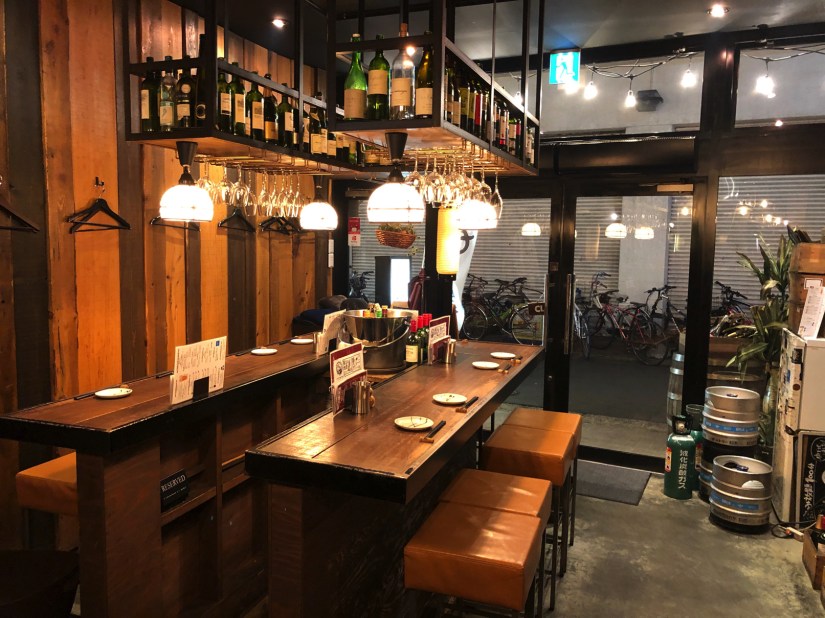 まだ満席なる前の一瞬の店内。普段じゃあまり店内の写真を撮らないのだけれど、この時はセンスの良さについ感動してしまいパチリと。高い天井と照明のバランスが良いのと、空間の使い方がセンスを感じさせる。ちなみにこの後、ここに座ったのは合コンと思しき男女のグループ。良いなー、青春だなー、フェロモン全開だなーという感じでした。