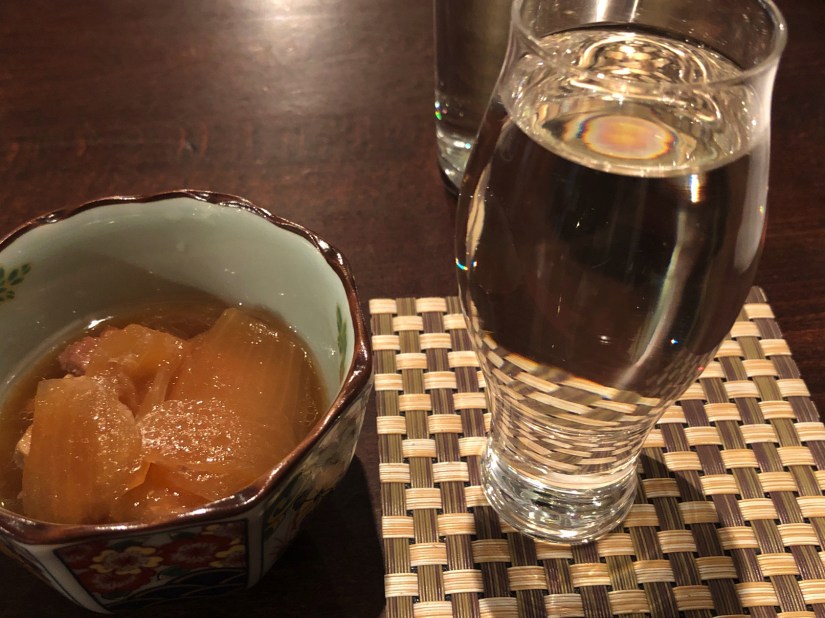 おでんの店なので、盛り合わせを注文したら、これがけっこう出汁の効いた優れもの。良い日本酒には良い肴が必要だ、酒だけ飲めれば良いなどという暴言を吐くつもりはない。発酵酒は基本的に料理と合わせて飲む酒だと思う。九州発の柚子胡椒が東北仙台でおでんについてくるというのはありがたいことだ。こういうところは素直にありがたいと思う。地元の食材を地元の食べ方だけで食していると進歩がない。料理は、やはりインスパイアし影響しフージョン、融合していくことで進化するものだ。ちなみに最近の好みの食べ物はアボガドを海苔の佃煮で和え、いりごまをかけて食べること。これは簡単でうまいと思う。考えた奴は偉大だ。