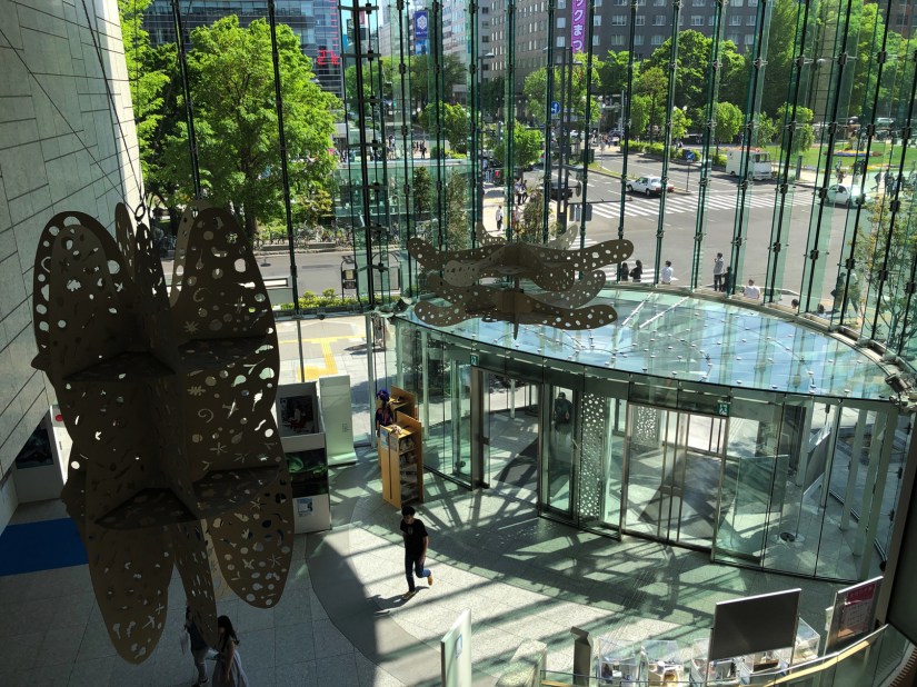 大通公園で行き交う人を眺めるにはこれくらいの高さが良いのだ。ビルの上層階のレストランではちょっと遠すぎる。とうきび売り(焼きとうもろこし)販売所も始まる頃で。散歩するには最高だ。