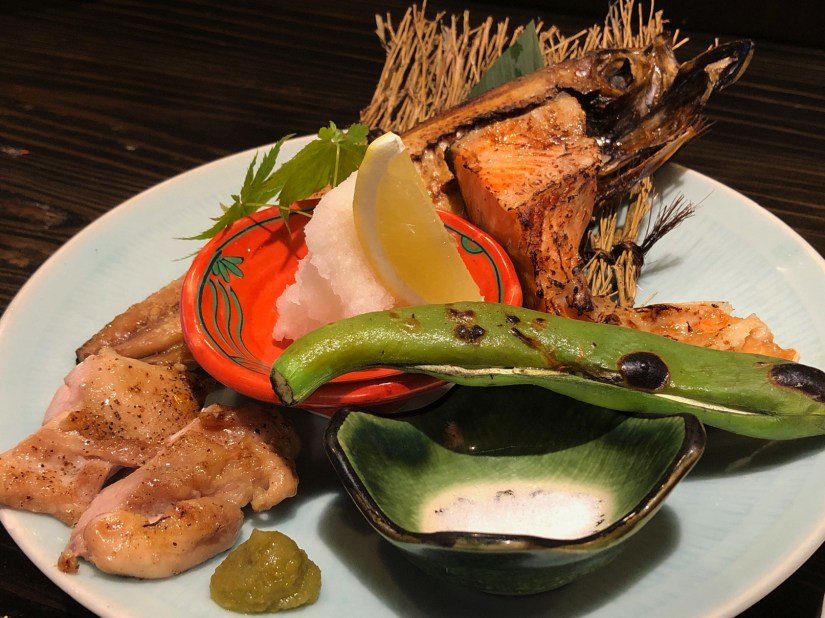 炉端焼き発祥の店に行ってみるとわかるが、炉端焼きとは目の前で魚を焼くスタイルではなかったようだ。今では客の目の前で魚を焼く店を炉端と呼んでいる。ただ、焼き物は魚に限らず肉や野菜も焼く。この日の一番は、そら豆。焼いた鳥に柚子胡椒をつけるのは九州スタイルだと思っていたら、なんと今では仙台でも当たり前のように柚子胡椒付きになっていた。