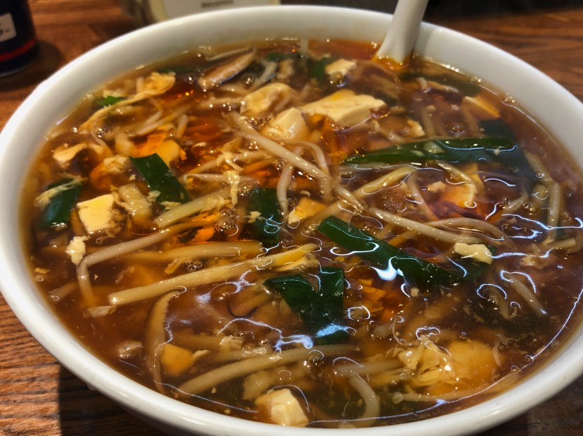 ちょっと不便な場所だが、好みの味の中華なのでお昼に時間があればふらっと行くことにしている。酸辣湯麺は酸味よし、辛味よしでお気に入りだ。なんというか、町中華という代物は、こうしたちょっとだけ尖った商品を置いてくれるのが大事な気がする。みんなが頼む定番は重視してもらいたいが、所詮最大公約数的な味になってしまう。それはそれでよいから、こうしたちょっと変化球気味のメニュー、野球で言えばショートで六番バッターみたいなやつには、ピリッとした尖ったところを見せて欲しいものだ。