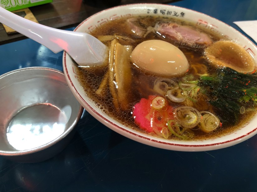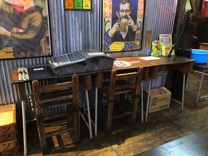 実は、この店の素晴らしいのは、お麩の入ったノスタルジックなラーメンではなく昔の小学校を模した内装なのだ。(チャーシューは絶品だけどね)水はアルミカップに入れて飲む。テーブルの横には昔の机と椅子、それもなんと懐かしの木製が並んでいる。ノスタルジーマーケティングは、高齢者にはたまらん吸引力を持つものだが、それにまんまと引っかかっている自分を笑ってみるのもよいかと。ここでラーメンを食べると、川崎のウルトラマン酒場に行きたくなる。