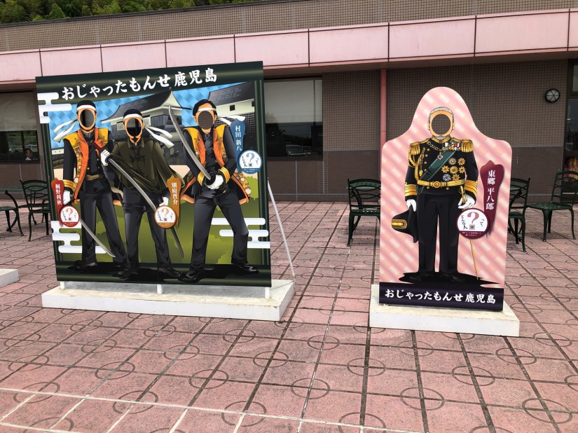 駐車場の手前には、お約束の写真撮影コーナー。今やスマホで、いつでも誰でも噛める常備な社会なので、そこにいっても、この撮影スポットがあるのは、21世紀文化といって良いのか。平成の落とし物というべきか。個人的には左の三人組で写真を撮る場合は、歴史をよく勉強してからにしてほしいと思う。明治維新と戊辰戦争の話は、いずれまた別稿で。
