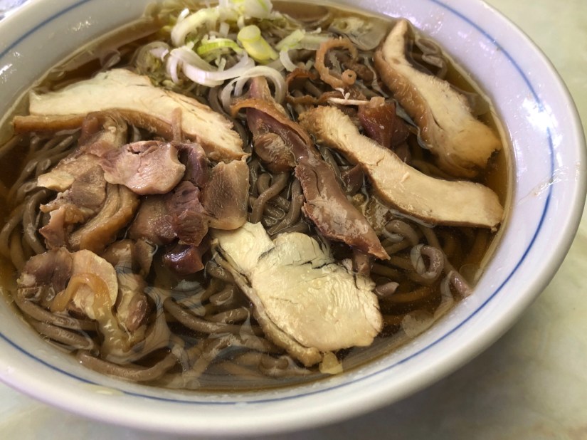 しかし、いざ食べてみると全く違うものだとわかる。蕎麦は太めでコシが強い、モチモチと歯ごたえすらある。蕎麦はすするものなどと粋がっていう人がいるが、この蕎麦は噛みしめる、飲み込むのに段階が必要な力強さを要求する。つゆは鳥出汁で、日本蕎麦らしくない。塩ラーメンのスープと言われれば納得しそうな味の強さがある。鶏肉は、いわゆる親鳥なのだろう、歯ごたえがあるブロイラー的柔らかさはない。ああ、確かにこれは「肉蕎麦」というしかないな。好みだ、圧倒的に好みの味なのだ。
