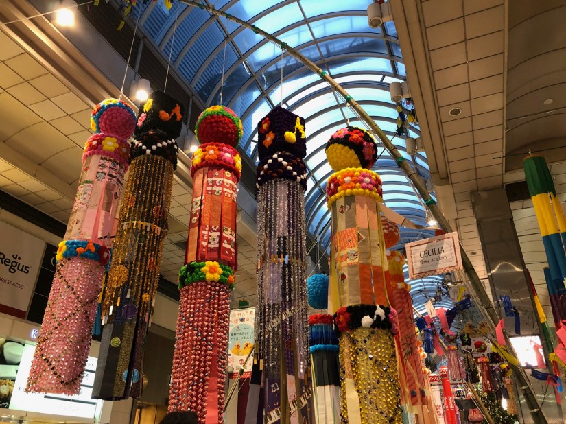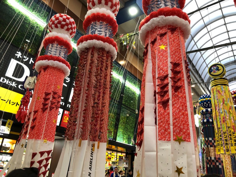おまけに七夕飾りは地面から1mくらいの高さまでぶら下がっている。そのため、目の前には七夕飾りが障害物のように立ちふさがる。飾りの一つ一つを暖簾をくぐるように押し分けながら歩くのは、これまたしんどい。かと言って、飾りと飾りの間を通ろうとすると反対側からものすごい速度で突入してくる高校生がいたりするので、これまた罠を仕掛けられたような気分になる。ぼーっと七夕飾りを見ながら歩くと、相当ひどい目にあうことは間違いない。正しい行動をとるのであれば、一旦通路の端にに近いところで停止、ゆっくり前を確認した後、見上げて鑑賞する。見終わったら、また前を確認し、歩き始めると言ったところか。