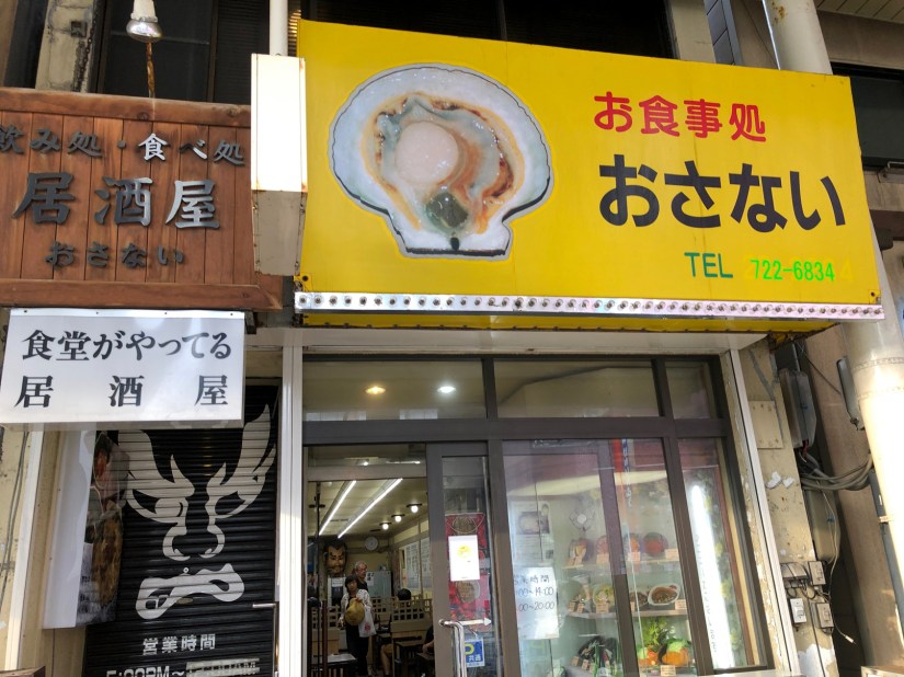 青森駅前にある食べ物屋の塊、なぜか全国チェーン店が多いのだが、その中にある食堂が「おさない」という。一見すると飲み屋なのか、食堂なのか微妙な感じがあるが、これは食堂に限りなく近い飲み屋という定義が正しいようだ。入り口の黄色い看板は、あまり飲み屋の雰囲気を感じさせない。