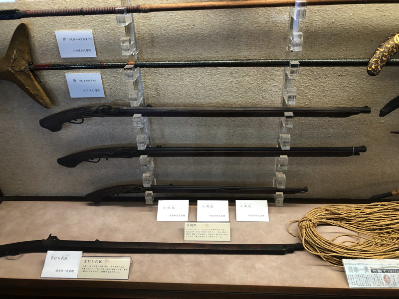 鉄砲もこうして近くで見ると、ほぼ銃身でできている、それにわずかに持ち手というか握り手がついているだけという簡易な構造。当時の日本は世界最大の鉄砲保有国だったそうだから、戦国時代の軍備費はさぞがし莫大だったのだろうなどと想像してみた。
