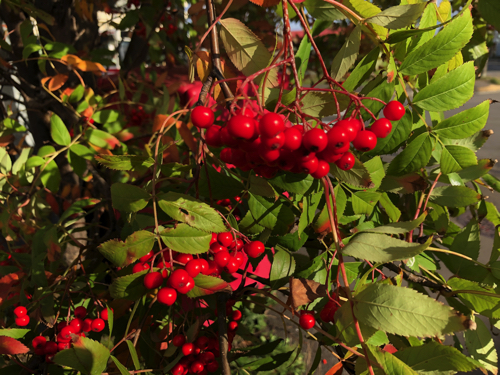 そんなとき北海道に行ったら、ななかまど のみが真っ赤に色づいていた。子供の頃は「カラスの実」と言っていた。理由はわからない。真っ赤な身を食べるのが、カラスくらいしかいないと思われていたのか。こんなに綺麗な赤なのだが、全く食用にはならない(はずだ)