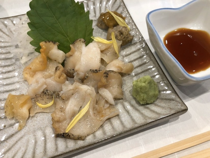 そして、えりも産のツブを刺身で注文。ここ数年、えりものつぶ貝は不良続きで、値段は高騰する一方だ。もはや庶民の食べ物とは言いがたい。昔はツブ一個が100円程度、貧乏人の味方だったのだが。それでも、酒の肴に腹いっぱいになるほど食べるわけでもないので我慢するしかない。コリコリとした食感と磯臭い味がツブ貝の持ち味だが、それと肝の苦味が酒にはまたよろしい具合で。それでも、札幌で食べるよりはだいぶお安かった。