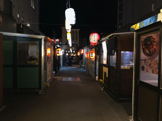 この屋台の周りは一大居酒屋街で、看板が帯広風というか妙にでかい。2階3階ぶち抜きの看板などなかなか見ないななどと思いつつ、大衆寿司酒場には思わず笑った。帯広で寿司か・・。ただ、最近は流通が良くなったので、北海道内陸部でも魚はうまいのだ。例えば、釧路根室で上がった魚を札幌まで陸送する。その途中で帯広で荷を下ろせば、札幌より良い段階の魚を仕入れることができる。これは旭川も同じで、オホーツクから札幌に行く途中を中抜きするので、札幌よりも生きがいいと鮨屋の親父が威張っていた。