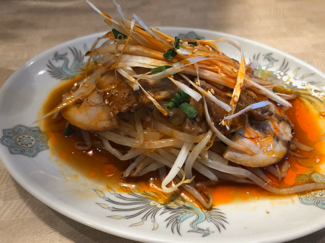 さて、安いメニューの典型は、揚げ餃子。甘酢の餡掛けになっているのだが、コスパが良いとは言い難い。単品ではお値段相当の価値というところか。餃子は中の餡の質でごまかしやすい商品だから、ここは素直にごまかされておこうという理解をしておく。ただし、これがラーメン¥290に追加で頼むサイドとして考えれば、立派に役目を果たしてくれる技能賞的商品だ。