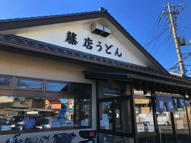 そんな武蔵野うどんにも名店がいくつかあり、この「ふじだな」が、知る限り一番混み合っている店だ。駐車場が満車になっていて、店内では順番待ちの行列ができている。国道17号のバイパスからちょっと入ったところだが、週末は渋滞が起きるほどの人気店。店内はカウンター、テーブル、小上がり全てで、親子揃ってうどんをもぐもぐやっている。(すすっと吸い込めるうどんではない)