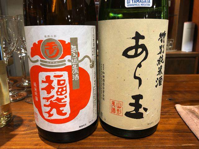 豚しゃぶによく合うお日本酒を用意したと言うことで、見たこともない日本酒が二種並べられている。これを手酌で楽しみながら、しゃぶしゃぶに突入する。