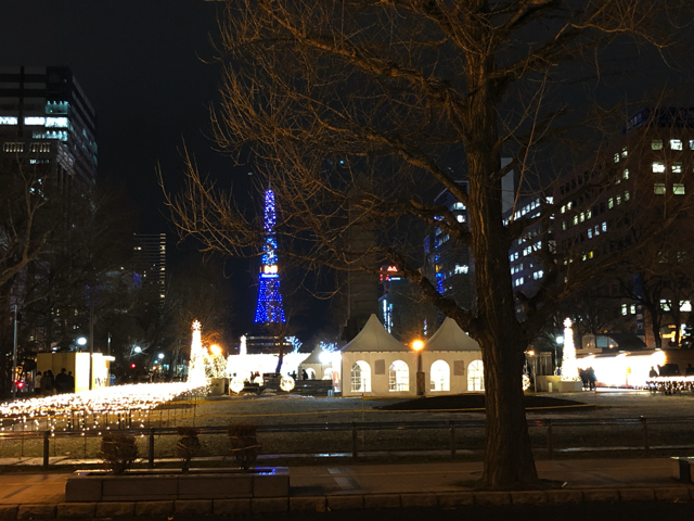 うっすらと雪が積もっていれば、なお一層美しい景色になるのだろうが、雪がなくてもそれなりによいものだ。そもそも雪が降ると地面が滑るのでぶらっと歩くには辛い。どうっも北海道人は寒さはお好みではないようで、この時期に大通り公園を歩いているのは外交人観光客ばかりのような気もするが。