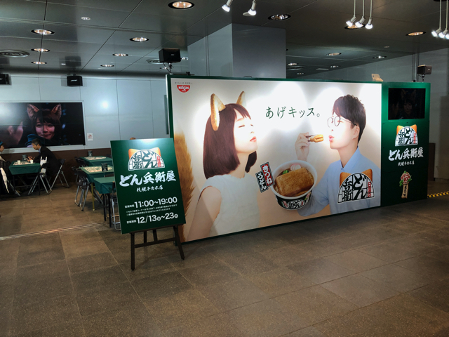 最初はどん兵衛のパクリで誰かがジョーク店舗を出したと思っていたのだが、どうやら直営店らしい。どん兵衛屋の看板がデカデカと立っていて、その裏側には客席がある。屋台と言うには規模が大きい。