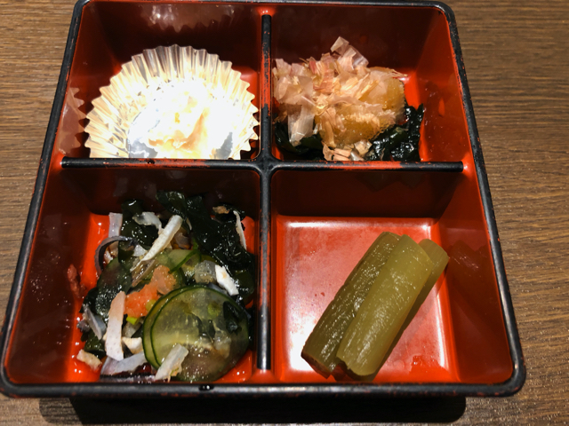酒を注文するとお通しが出てくるのだが、これがちょっと素敵だ。一口サイズの突き出しが四品と言う感じか。そうとうな昔だが金沢の魚屋がやっていた居酒屋で。こんな簡易のお通しが出て感動した記憶がある。その店は、従業員が「今日はこれがうまいよ」と言って注文も取らずに料理がテーブルに7−8品並ぶのだが、これがどれもうまくて感動した。なんとなくお通しを見て、その金沢の店を思い出したのだが、メニューを見て注文しなければ何も出てこない出てこない当たり前の東京スタイルだった。