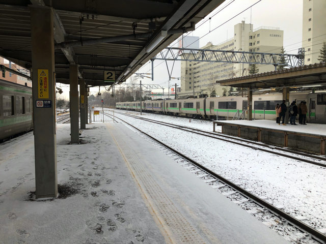 JRの駅でもホーム脇の除雪跡などかけらもない。この状態は12月初頭の雪が初めて降りました的な光景だ。