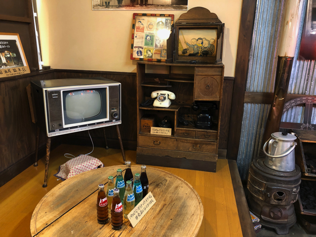 まあ、そういう時期の「茶の間」と言われた空間を再現して見せたのが、ラーメン屋というのもまた面白いが。当時はまだ茶の間という言葉は常用語であったし、リビングルームなどという言葉は新興勢力だった。電話はだいたい玄関か茶の間のどちらかに置かれていて、プッシュホンは普通に使われてはいなかった。ダイアル式電話が主流の頃だ。(30歳以下の人たちはダイアル式電話の掛け方はわからないだろう)