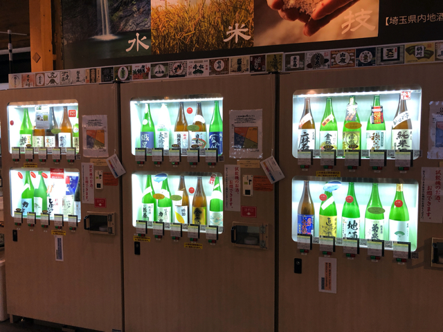 そして利酒のやり方だが、自動販売機のような陳列機がある。ここに隣にある引換コインの自動販売機で500円を投入し、コインを4枚手に入れる。このコイン一枚でお酒が一杯買える仕組みだ。機械の右側にある酒出口の下に猪口を置いて、好みの銘柄のボタンを押すと、およそ30mlほどの酒が出てくる。