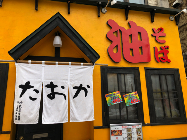油そば たおかという暖簾がかかる。黄色のファサードはよく目立つ。油そばと言われてピンと来ない時期があったが、要は汁なしラーメンのことで、タレがかなり濃くて油たっぷりなのだ。汁なし坦々麺などは、その親戚というか、元祖というか。たおかは札幌市内で複数店を構える人気店のようだ。ネットニュースでこの店の評判を見かけて、なんとなく試してみようかという気になった。油そばは好みではなかったので、自分でも不思議な決断だったのだが。