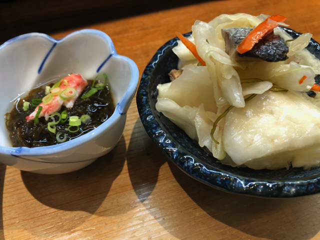 酒の肴には、この時期限定の自家製ニシン漬け。ザクッと切った大振りの大根がうまい。身欠にしんから出た魚くささがうまさの源泉だ。千歳鶴を飲む時は、季節の魚の刺身とかエゾシカ肉の炙り焼きとか、そんなごちそうはいらない気がする。すけそうだらの鱈子を甘辛く煮たものとか、ニシン漬けとか、そんな素朴の料理が似合う。焼き鳥だったら、もも肉タレで焼いて唐辛子たっぷりみたいな感じだ。北海道的には豚精串みたいな、野蛮な食い物が良いとも思う。だから、直営店に置いてある千歳鶴の高級大吟醸シスターズには、どうにも注文する気が起きない。(千歳鶴大吟醸は間違いなくうまいのですよ)