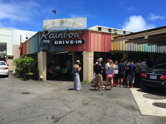 ハワイの食べ物、それもローカル優先で観光客には敷居が高い店といえば、このレインボードライブインだと思う。まず外見がいかさない。ダサダサだ。記憶に間違いがなければここ30年は同じだったような気がする。オバマ前大統領も来たことがあると言って一時期話題になったらしいが、オアフのあちこちにあるくたびれたプレートランチ屋なので、勿体をつけるほどの店ではない。(消して貶してはいない)