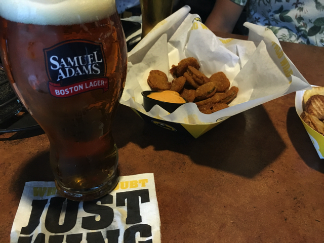 それでも嬉しいのはチキンウィング屋のだいたいはクラフトビール屋でもあり、ドラフト(生)ビールがたくさんあることだ。最低でも10種、普通は20種くらい置いてある。このサミュエルアダムスはボストンのビールだが、ここ20年くらいのお気に入り。アメリカに行けばこれを飲んでいる。プレミアムモルツをもっと濃厚にして華やかな香りを持たせればこれに近くなるか・・・・。そうなればすでに別ものだね。