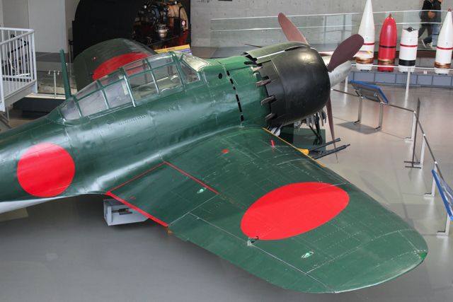 この機体もそろそろ開発から100年近く経つので、もはや骨董機にあたるのだろうが、やはり美しいフォルムと言えるだろう。武器に優美さを求めるのは江戸時代の日本刀にも通じるのかもしれない、近世日本の美意識の現れのひとつということか。などと考えながら零式艦上戦闘機に見惚れておりました。