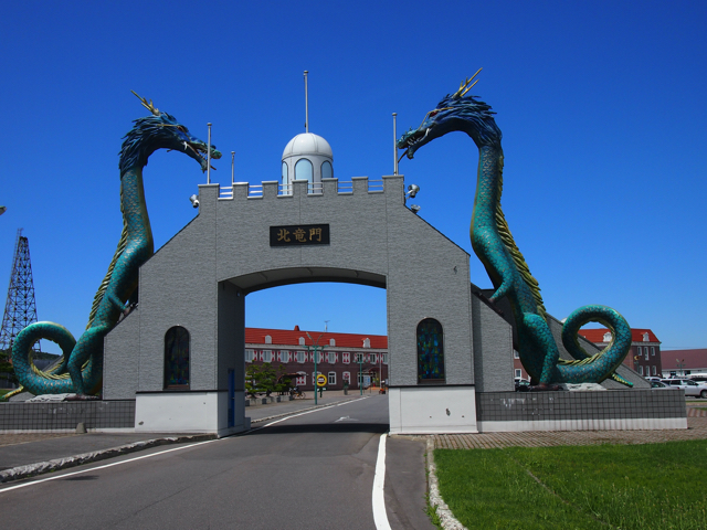 ノースドラゴンとレインドラゴン、なんだかファンタジーに出てくる守護竜みたいな響きだが、れっきとした大農業地域だ。北竜町の道の駅は入場門で竜二頭にお出迎えされる立派な施設だった。温泉・宿泊施設有りだから道の駅という規模を大きく超えている。このツインドラゴンが、どうもチャイナの伝説に出てくる龍と、西洋のナンバーワンモンスター「ドラゴン」の折衷案的なデザインというか造形で、ちょっと面白味がある。