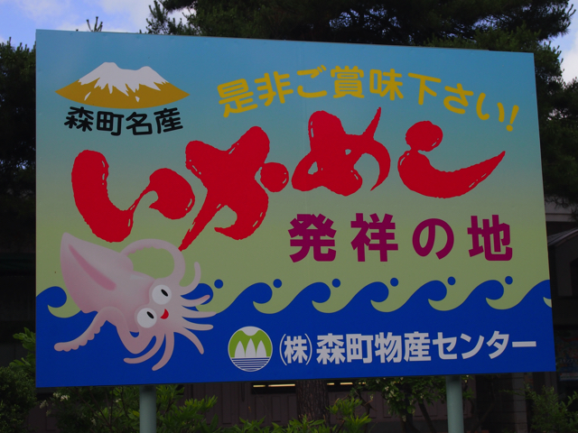 函館から車で2時間はかからないと思う「森町」は、この看板の通りに「いかめし」発祥の地だと言うことは知っていた。JR森駅の前にある本家本元のイカめし屋に行ってイカ飯を食べようと思ったが、時間が遅くなってしまい断念した。悔しいので看板の写真を撮ったのだが。