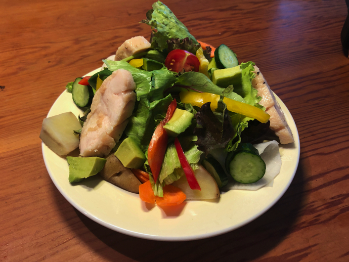 そのチキンをたっぷりの野菜と合わせてもりもり食べる。鳥の胸肉とは思えないジューシーさがたまらない。チキンはあっさり仕上がっているので(鳥の旨味は残っているから味が薄いわけではない)、ドレッシングは濃い目にする。個人的にはオリーブオイルとバルサミコでシンプルに行きたいところだが濃厚なコブドレッシングの出番もありだろう。ごろごろチキンのグリーンサラダで1日分の野菜を食べるのだ。