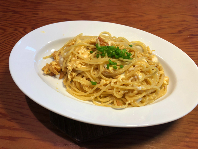 その後に卵のペペロンチーノでしめればパーフェクトな食事になると思うのだが、この卵のペペロンチーノが何度やってもうまくいかない。これこそ調理技術、腕前が全ての料理なのだ。フライパンで熱したオリーブオイルとガーリックに溶き卵を入れ、ほぼ同時に茹で上がったパスタを投入する。火を止めパスタの余熱で一気にとき卵を絡ませる。皿に盛り付けると底にうっすらと固まりきらない卵がスープ状に見える。パスタは卵で黄色くコーティングされている。というのが正解なのだが、出来上がったものは失敗作で卵が塊になりスープどころか炒り卵パスタの出来損ないという感じ。火の入り方が強すぎるのだ。わかっているのだけれどねえ。