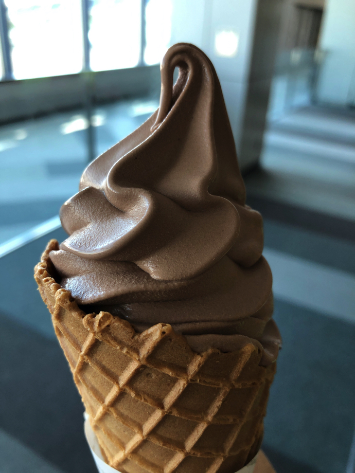 食べ終わるのが惜しい、悲しくなる困ったソフトだ。普段はあまり食べないソフトクリームだが、滑走路に止まっている飛行機を見ながら食べる。ちょっとしたプチ贅沢で、小さな幸せを感じるひと時だ。