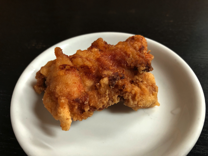 ザンギを一個だけ注文できるのはありがたいが、メニューに載っているのは3個からなので、いわゆる裏メニューというやつらしい。ザンギを食べながら、ラーメンが出てくるのを待つ。汗が止まらない。