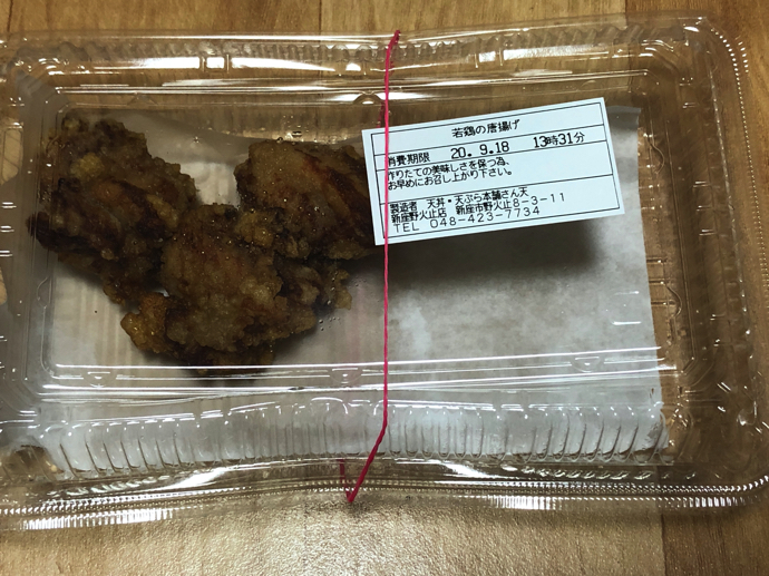 ちなみに、天丼屋でテイクアウトの唐揚げを買ったら、きっちり製造日時シールが貼ってあった。 この店の天丼はなかなか好みだが、唐揚げも良い仕上げだった。良い商品に良いオペレーションの二つが揃って良いお店になる。