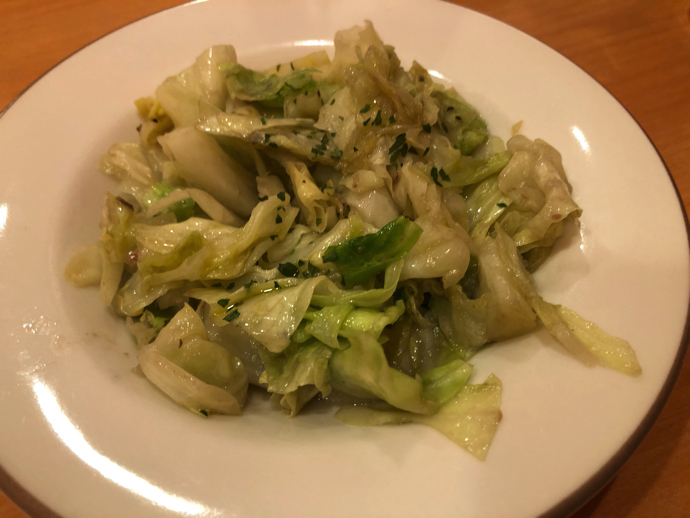 このキャベツのアンチョビー炒めも、家庭ではできそうでできない。そもそもアンチョビーは缶を開けたら使い切るのがたいへん苦労する。一回で使い切るのが難しい。もう少しテイクアウト専用メニューでも開発して、新規需要を開拓する方が、食べながらマスクをしてねというより商売になりそうな気がするのだが。