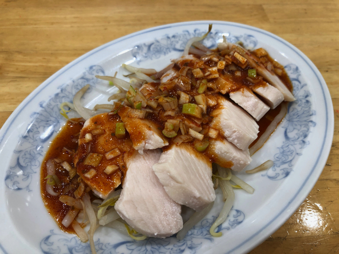 今月の限定品らしいよだれどり。肉肉しいので餃子は頼めないなどと言いながら、鶏肉料理はつい頼んでしまう。悲しい職業病みたいなものだ。居酒屋に行くと無条件に唐揚げとピザを頼んでいたものだが、そろそろこの悪習からは卒業したい。