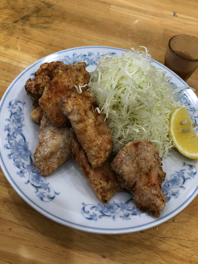 埼玉県の隠れ中華チェーン、餃子の満州で実はいちばんの好みなのが鳥の唐揚げだ。この鳥の唐揚げはもも肉と胸肉が混じっている、珍しい唐揚げなのだが、そこにキャベツの細切りにかけるタレ(ドレッシング)がついてくる。これがうまい。これだけ売って欲しいくらいだ。鶏肉は生姜味がかなり強めで、衣はさっぱりとした竜田揚げに近いもの。これを、レモンサワーで流し込む。ご飯と一緒に食べるのはもったいない。餃子は確かに看板メニューでよろしいのだが、この唐揚げを頼むと餃子と合わせて肉肉になってしまうのでちょいと注文するのが厳しい。