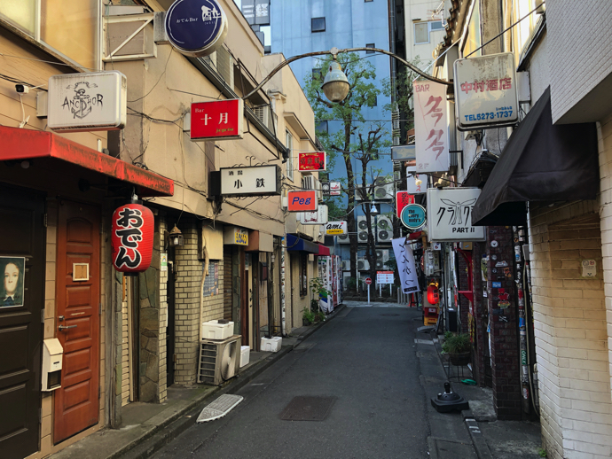 夜になれば怪しい看板が、人を誘い込む。どの店も小ぶりで十人も入ったら立ち飲みになるような場所だ。おそらく今回の健康増進法のたばこ規制は絶対に適用されない(適用したくない店主とされたくない客の合意で)店が多いだろう。個人的にはタバコは吸わないが、このゴールデン街の店は隣の客がタバコを吸っていても仕方がないなあと思わせる場所でもあるようだ。