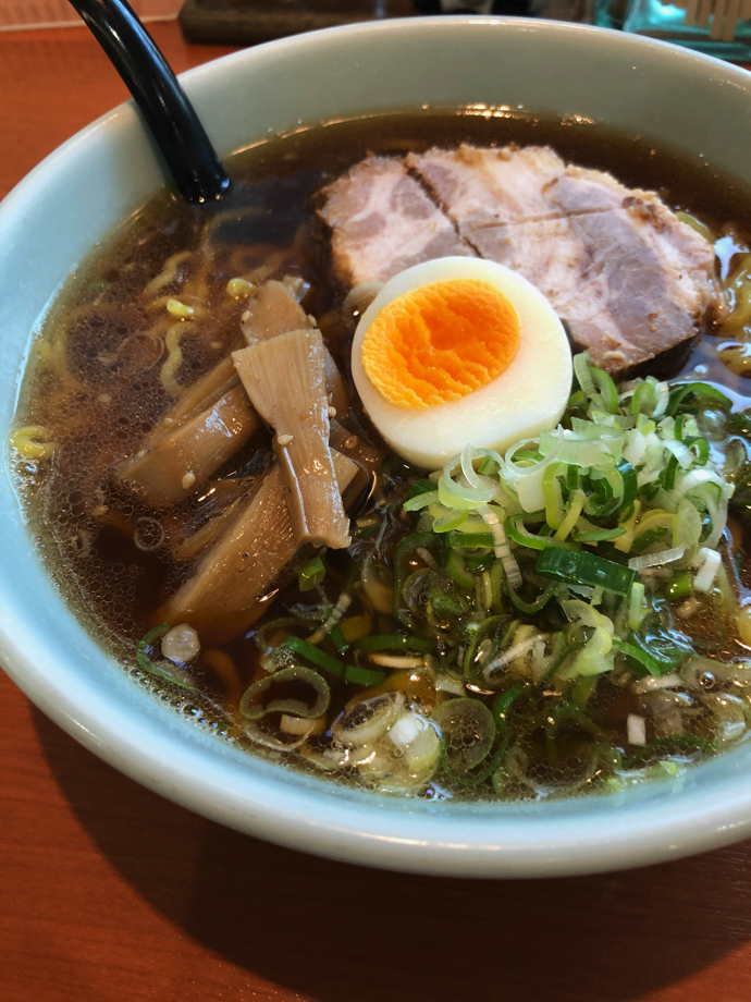定番醤油ラーメンを頼むが、店の推しは塩ラーメンらしい。それは次回にするとして、最近のコロナ対策の流行で店内にはやたら持ち帰りのポスターが貼ってある。いちばん目立つのが、チャシューの一本売り。まあ、納得できる商品ではあるが、時代は変わったものだと実感する。ラーメンは典型的な昭和のラーメンでスープは濃いがくどい味付けではない。どちらかというとさっぱり系なのだろうが、札幌ラーメンとしては濃い目の味付けだろう。チャーシューは確かに旨い。肉の臭みが程よく抜けている。周りでの注文にチャーシュー麺が多いが納得だった。茹で卵半分というのは、今時珍しいと思うし、メンマというよりシナチクという方がぴったりな感がある。これにお麩が乗っていれば昭和度がもっと上がるのだが。麺は実にうまい。スープに絡みもちっとした中太ちぢれ麺がスープによく絡む。