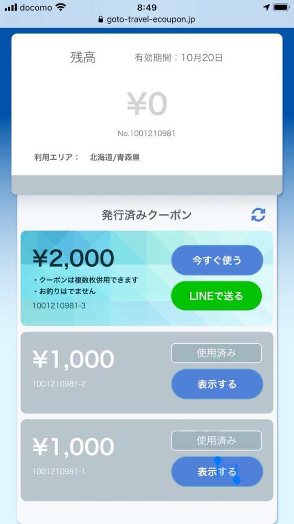 Go To トラベルの恩恵は、旅費が安くなるのもさることながら、現地で使えるクーポンが嬉しいぞと思っていたが、実はこれが思いの外使い勝手が悪い。予約した緑代理店から送られてくる番号で、スマホでアクセスしてクーポンをゲットするまでは良い。問題は、そのクーポンを使おうとすると、実に画面繊維の悪い、そして説明不足というか説明がない「性格の悪いアプリ」だ。設計者の顔を見てみたい。