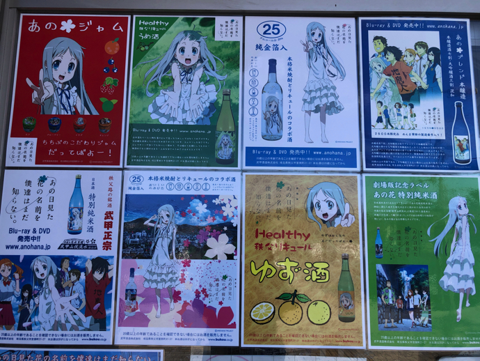秩父市では商店街などともコラボしているので、街歩きの時の楽しみの一つになると思うが、何故か主人公キャラ(少女)か酒造メーカーとぎっちりタイアップしているみたいだ。なぜだろう。主要キャラは高校生なので酒を飲む年齢の設定ではないし。