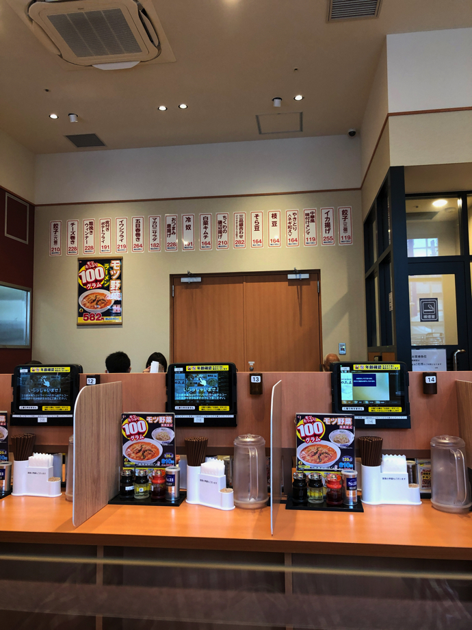 また、おそらく設計段階で検討はしたと思うが、一人用カウンタの作り込みが全然できていない感が強い。席の間隔が狭すぎるし、テーブルの上も狭すぎる。カウンター以外のテーブル席の間仕切りも、そして運用の仕方もかなり問題があるように思った。ピーク時には客を詰め込みすぎる。間仕切りが機能しない。アフターコロナでは物理的な空間の確保と、それを確実に実施して客同士の安全な距離を担保するオペレーションが欠かせない。ところが、従業員の意識がそこまで達していない。コロナ前と同じように空いている席に客を詰めこんでは行けないはずなのだが。