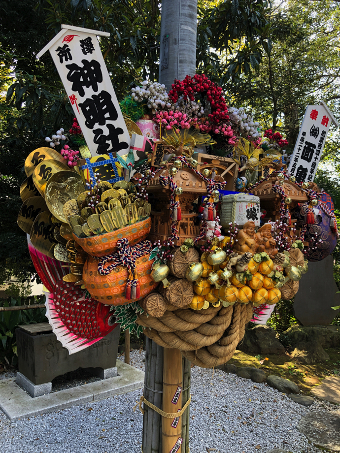 所沢では有名な神社が「神明社」で、境内には商売繁盛を願う大きな熊手があった。確かに年末が近づいてきている。コロナで商売がうまくいかない人も多い時期だけに、せめて気持ちは明るくねということなのか。