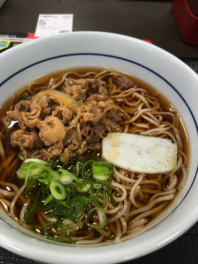 牛丼屋でたまたま朝食を食べようと入った時に、なぜか目に止まってしまったのが、朝蕎麦の一言。そしてなんと自動販売機のくせに(くせにとは失礼か)、グレードアップ推奨販売機能まである。なので、ぎゅうどうんやの定番朝飯、納豆目玉焼きセットには目もくれず、朝蕎麦+牛肉トッピングにしてしまった。そもそも、この店はうどんと牛丼の店なのだから、二重に「00ではない方」という注文になった。牛丼の具をトッピングにした麺は、実にうまいものだ。チャーシューなどよりも肉トッピングとしてはレベルが上? のような気がする。